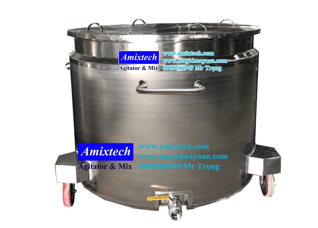 - Bồn thiết kế 02 lớp: lớp trong chứa liệu, lớp ngoài rỗng, bơm nước tuần hoàn giải nhiệt